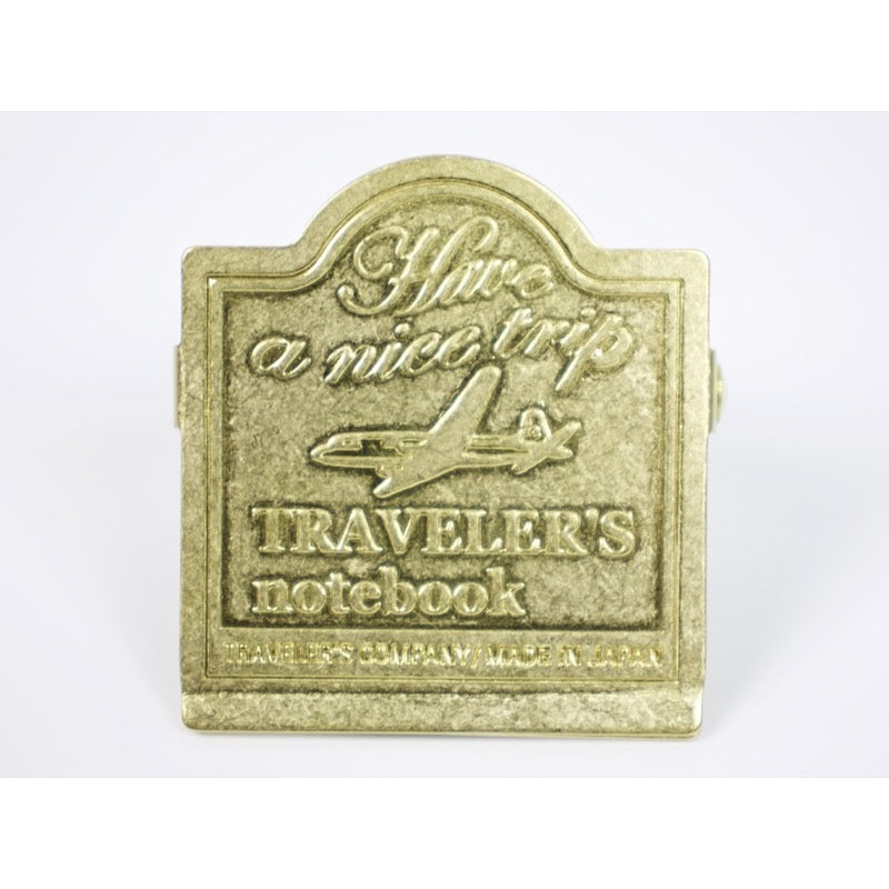 The lustrous golden hue of the Traveler's Company brass clip deepens over time and will eventually acquire the rustic appearance of an antique brass item. This brass item is crafted in Japan and features an airplane design with the ubiquitous Traveler's Co