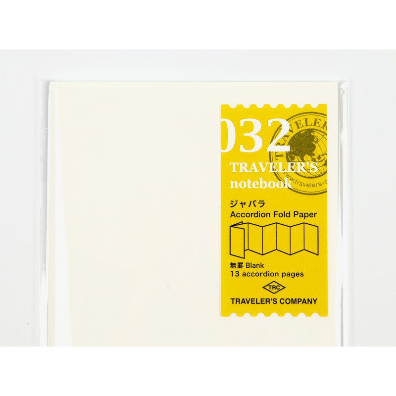 This Traveler's Company refill is arranged in an accordion-style fold. The paper itself is thick watercolor paper, making it perfect for getting creative. Draw, make a collage, arrange photos, tickets or labels or use the folded-out paper to write your tra