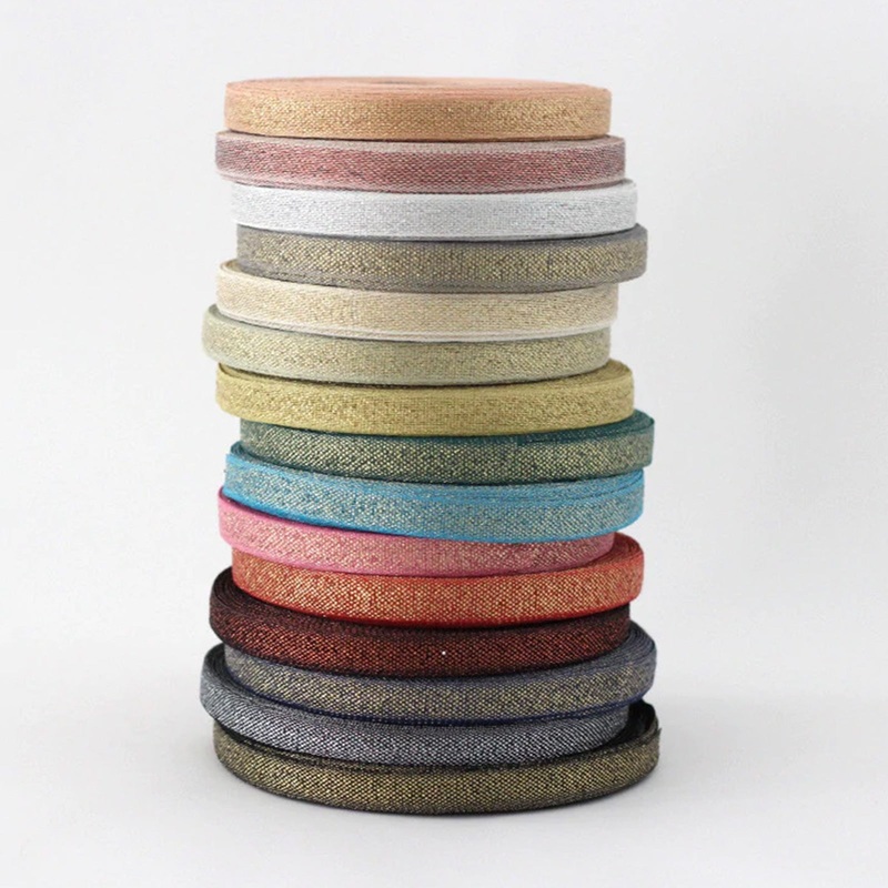The Metallic Loose Weave cotton ribbon is the latest addition tothe line. Cotton fiber and metallic thread are woven together, to create asubtle and elegant ribbon.Ideal for weddings and fine wrapping, it can also be used for endless hand-made applications