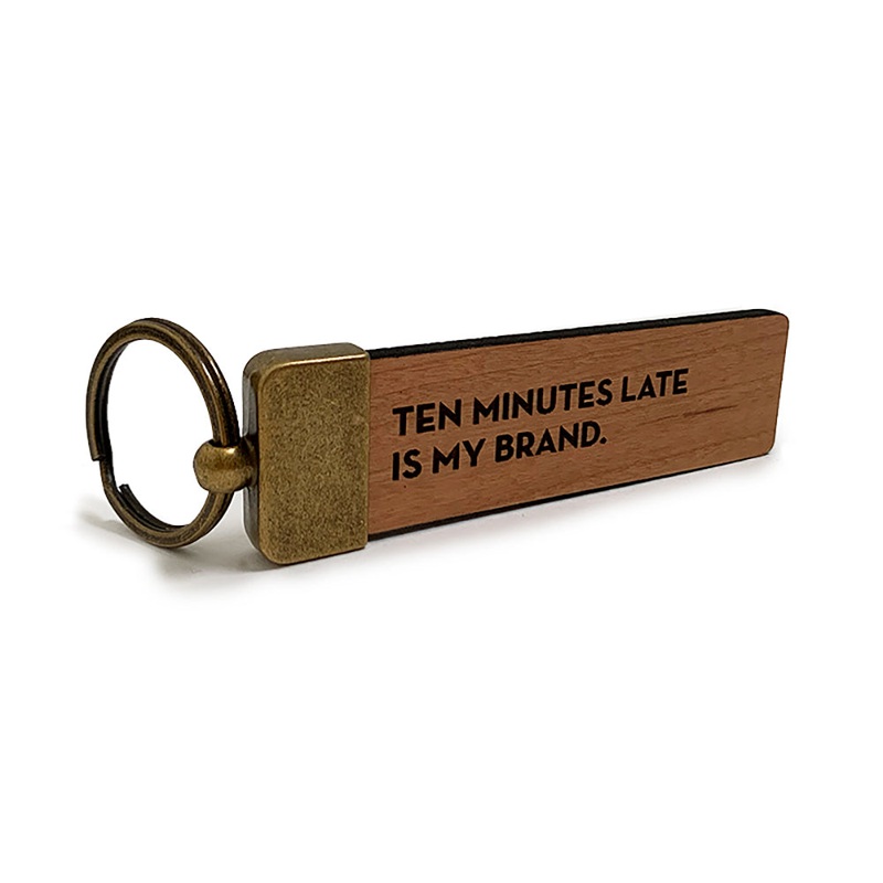 Size:3.5 x .18 x 1 inPrinting:EngravedMaterial:Cherry wood with brass key ring