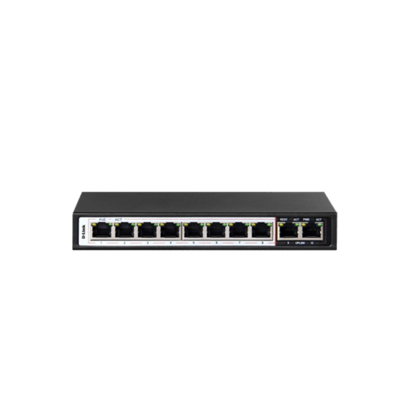 10-PORT 10/100MBPS POE SWITCH WITH 8 LONG REACH POE PORTS AND 2 UPLINK PORTS. POE BUDGET 96W.8 10/100 Mbps fast Ethernet PoE+ ports2 10/100 Mbps uplink portsPoE+ support up to 30W per portLong reach PoE support up to 250mSmart features: Extend, VLAN, QoS a