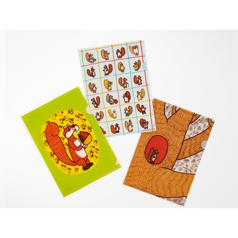 Folder Set DetailsThese folders fit into the pockets of A6 size Hobonichi Techo covers. Each one features a memorable scene from the picture book "Ohikkoshi" by 100%ORANGE. The folders have charming designs, like a squirrel nibbling on an acorn with a sati