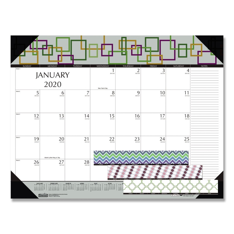 100% RECYCLED GEOMETRIC DESK PAD CALENDAR, 22 X 17, 2020