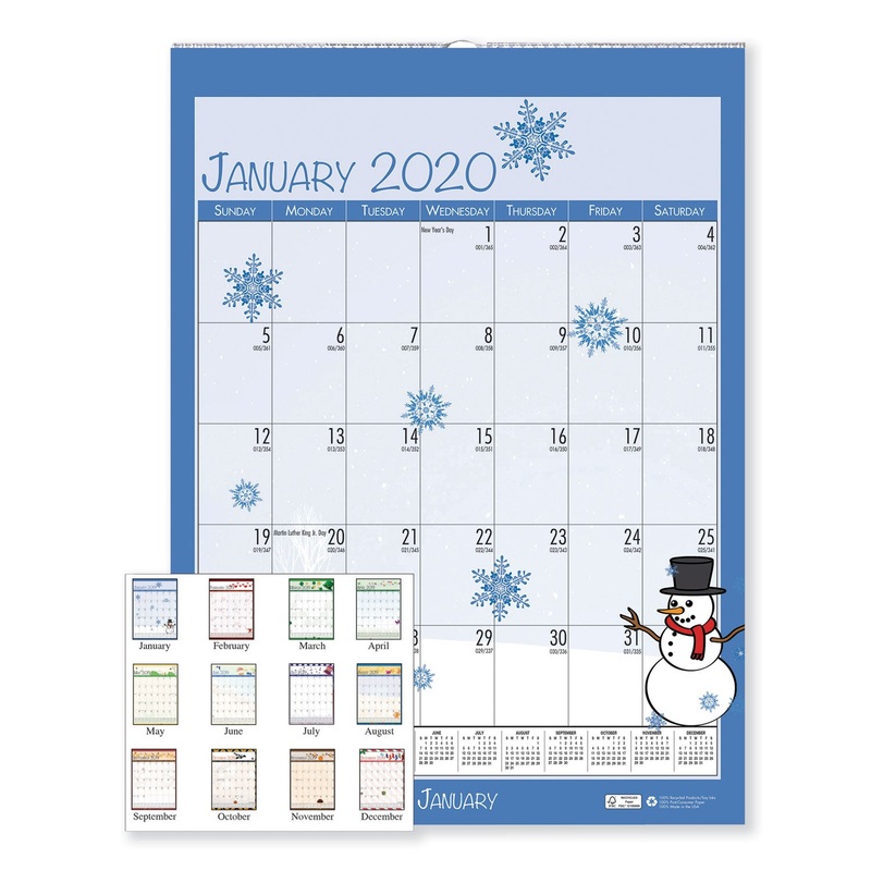 100% RECYCLED SEASONAL WALL CALENDAR, 12 X 16 1/2, 2020