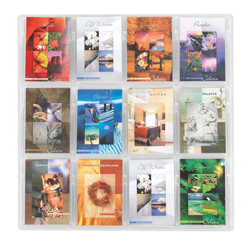 DetailsThink outside the box by looking in! Reveal design displays literature clearly. Each pocket holds 1-3/4" of printed material. Thermoformed one-piece units have no sharp edges or corners. The displays are wall mountable with hardware included. Wire p
