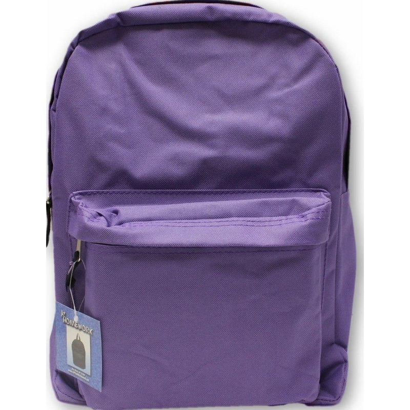 A Plus Homework Classic Backpack * Classic Backpack * Front zip pocket is perfect for holding extra pens and pencils safely * Color Purple * Size 15" x 15.5" x 1"