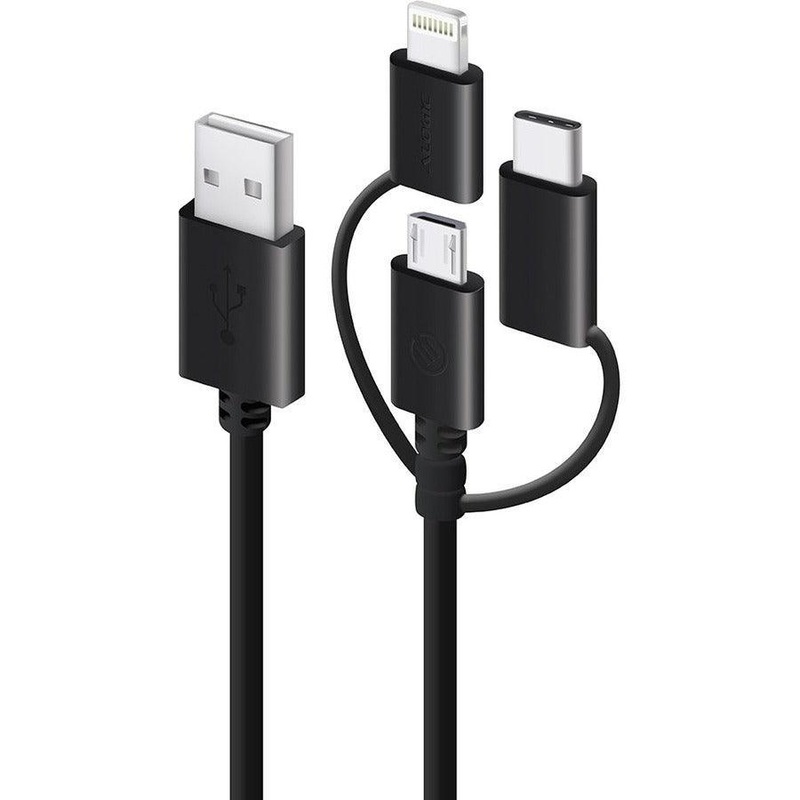 Product Name: 3-in-1 Charge & Sync Combo Cable – Micro USB + Lightning + USB-C – Black – 1m