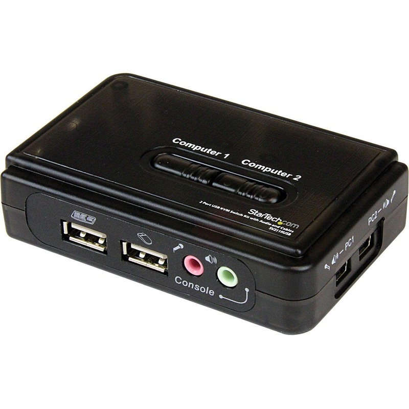Marketing Information: The SV211KUSB 2 Port USB KVM Switch Kit with Audio and Cables lets you control two USB-enabled computers using a single keyboard, mouse and VGA monitor and offers both hotkey and top panel push-button operation for simple switching between connected computers.