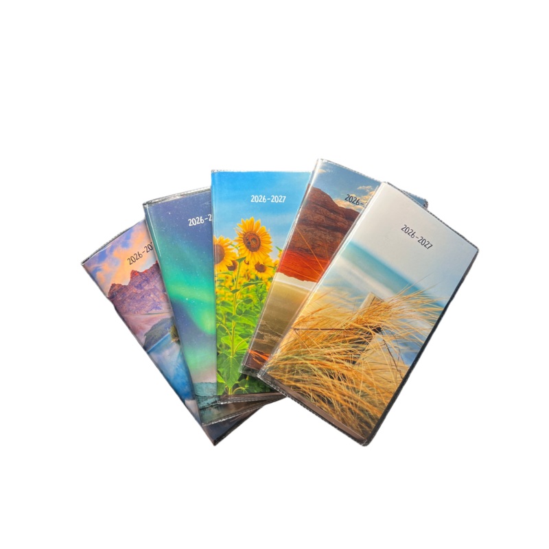 2-YEAR MONTHLY POCKET PLANNER Two-year planner, Colorful printed covers One month on each spread One block per day Space for notes Stitched binding with soft vinyl jacket Current and following months on each spread Countdown of days passed and days to come