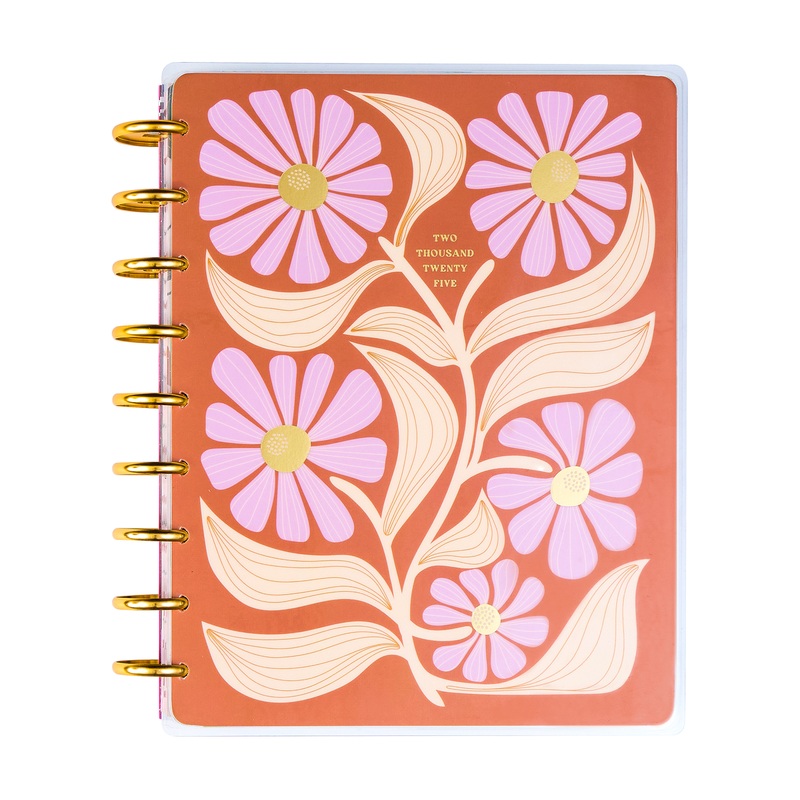Do one thing each day that brings you joy with this DELUXE Desert Rose Happy Planner with gold metal discs. This Classic sizefloral planner comes with a dashboard layout and runs from January 2025-December 2025. Thefloral planner design is inspired by arid desert landscapes and has gold foil accents and inspirational quotes. Use your complementary accessories and stickers and add your own accents to the inside pages.