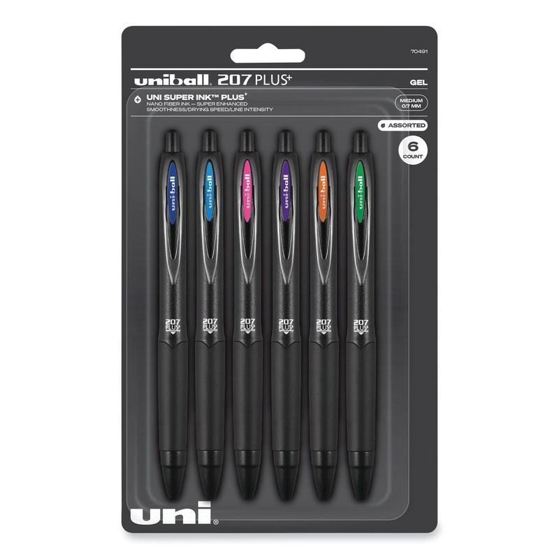 207 Plus+ Gel Pen, Retractable, Medium 0.7 mm, Assorted Inspirational Ink Colors, Black Barrel, 6/Pack