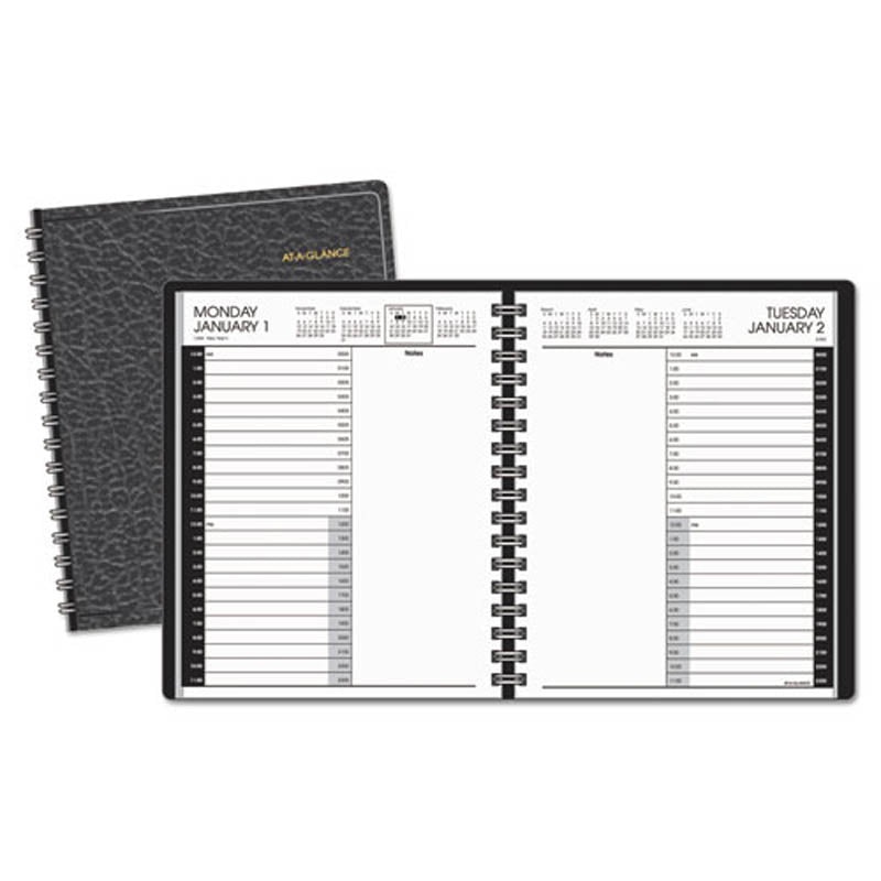 FeaturesPlan 24 hours a day, 7 days a week throughout your year.Premium paper resists ink bleed.24-hour appointment times with space for notes each day.One day per page, including weekends; current, two past and five future months reference.24 hours: milit