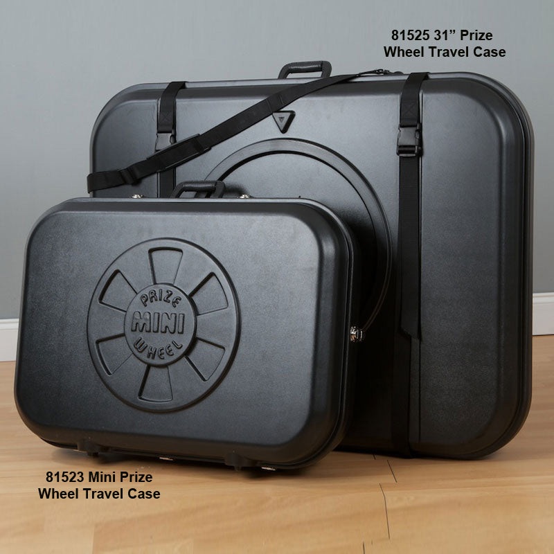 Protect and transport Prize Wheel easily.Once you have one, you’ll find that a Prize Wheel has so many different and creative applications, you’ll have to take it on the road. Our Prize Wheel Travel Case protects your Prize Wheel and makes transportation easy. The hard-shell design protects the Wheel from sharp corners and punctures, while the soft foam inserts securely suspend the Wheel in the center of the case. Heavy-duty steel hinges and latches, along with two heavy-duty nylon straps with Fastex buckles secure the case shut. Folding handle and detachable shoulder strap make carrying easy.