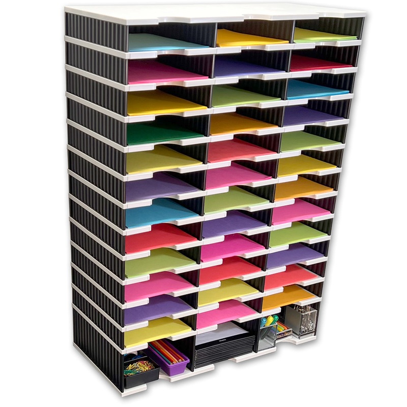36-Slot TierDrop Literature Sorter PLUS Riser Storage Base (28 ” wide)