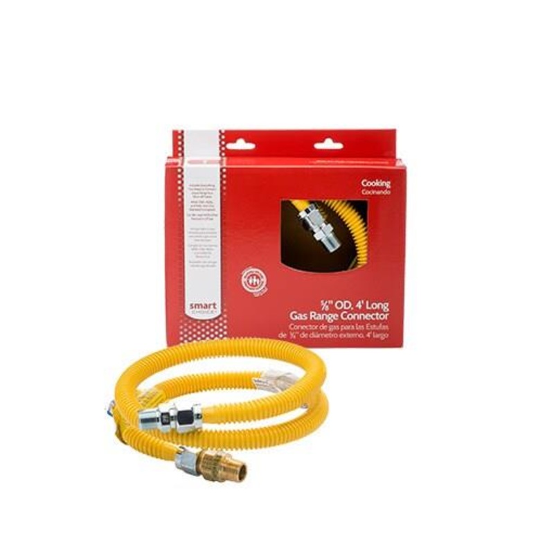 Smart Choice Safety+PLUS ProCoat gas connectors combine advanced corrosion protection with patented excess flow technology to enhance safety. It is CSA-certified for indoor and outdoor use. It contains a 4 ft. long 5/8 in. Safety+PLUS ProCoat range gas lin