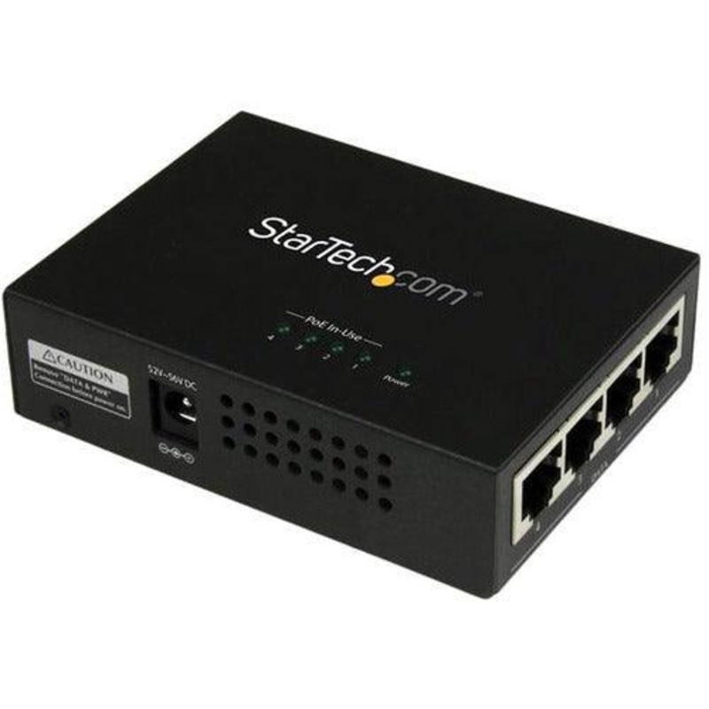 Deliver power and data to four Power over Ethernet devices using this wall-mountable PoE+ midspan hub. This Gigabit midspan PoE+ injector is a cost-effective alternative to upgrading your existing network switch to a PoE-capable model.