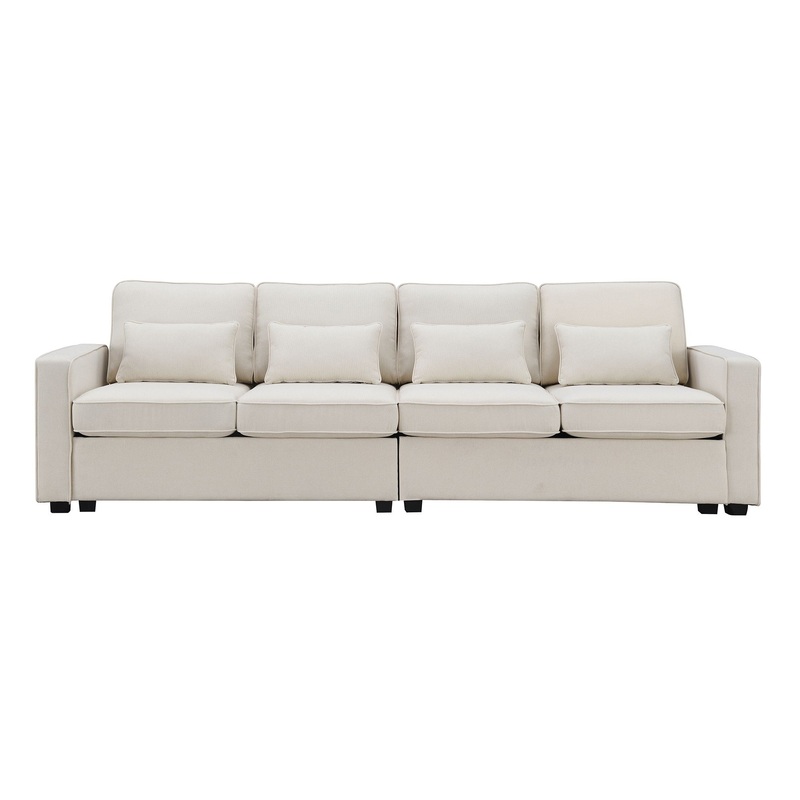 4 Seater Modern Linen Sofa With Armrest Pockets And 4 Pillows, Minimalist Style Couch For Living Room Beige