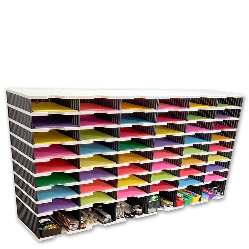 48-Slot TierDrop Literature Sorter PLUS Riser Storage Base (57″ wide)