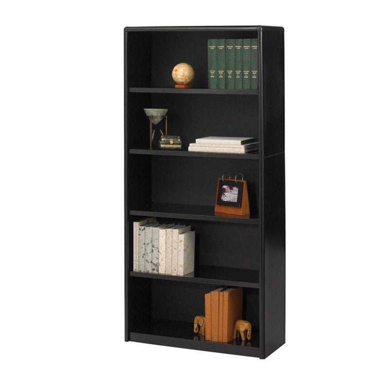 Our Economy Bookcases might be inexpensive, but they’re quality constructed with steel shelves, steel cabinet, and fiberboard backing. This 5-section bookcase measures 31 3/4″W x 67″H x 13 1/2″D. The top, third shelf, and bottom are fixed, while the second, fourth, and fifth shelves can adjust in 1″ increments during assembly. Plastic, snap-in radius corners provide speedy assembly.