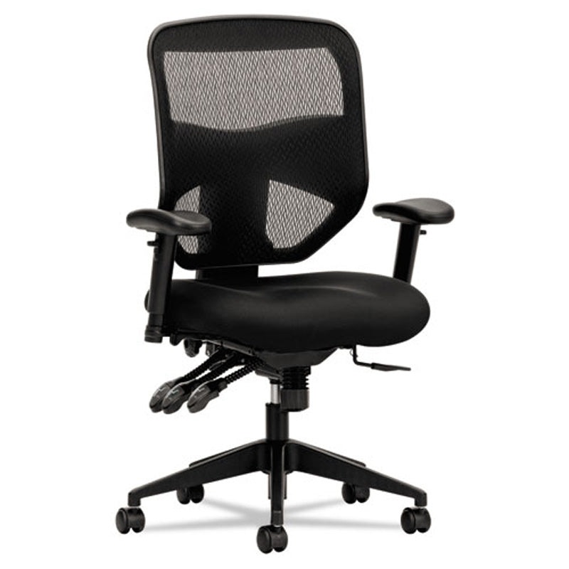 High-back chair with breathable woven mesh back conforms to the upper body for added support.
