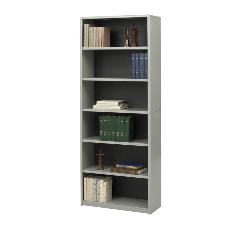 Our Economy Bookcases might be inexpensive, but they’re quality constructed with steel shelves, steel cabinet, and fiberboard backing. This 6-section bookcase measures 31 3/4″W x 80″H x 13 1/2″D. The top, center shelf, and bottom are fixed, while the second, third, fifth, and sixth shelves can adjust in 1″ increments during assembly. Plastic, snap-in radius corners provide speedy assembly.
