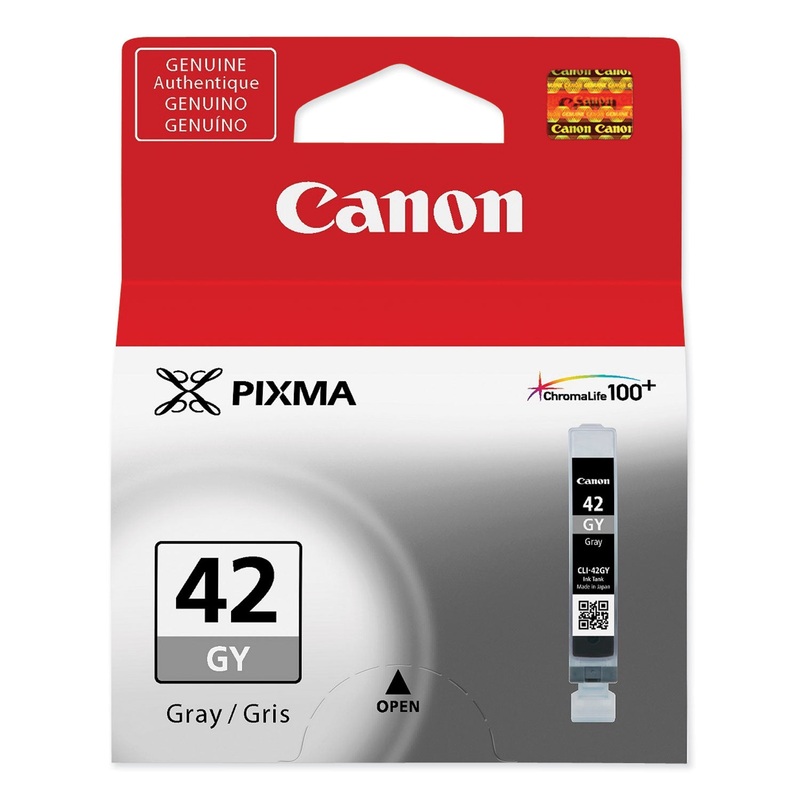 The specially formulated ChromaLife100+ Ink produces professional quality photo prints and superior longevity, perfect for displaying your printed works of art. Canon’s proprietary FINE (Full Photolithographic Inkjet Nozzle Engineering) technology delivers exceptional sharpness and detail. For the best printing results, always use genuine Canon ink and photo paper. Plus, Canon’s individual ink system can help increase efficiency by reducing waste and saving you money since you’ll only be replacing the color that runs out. Device Types: Inkjet Printer; Color(s): Gray; Supply Type: Ink; Market Indicator (Cartridge Number): CLI-42.