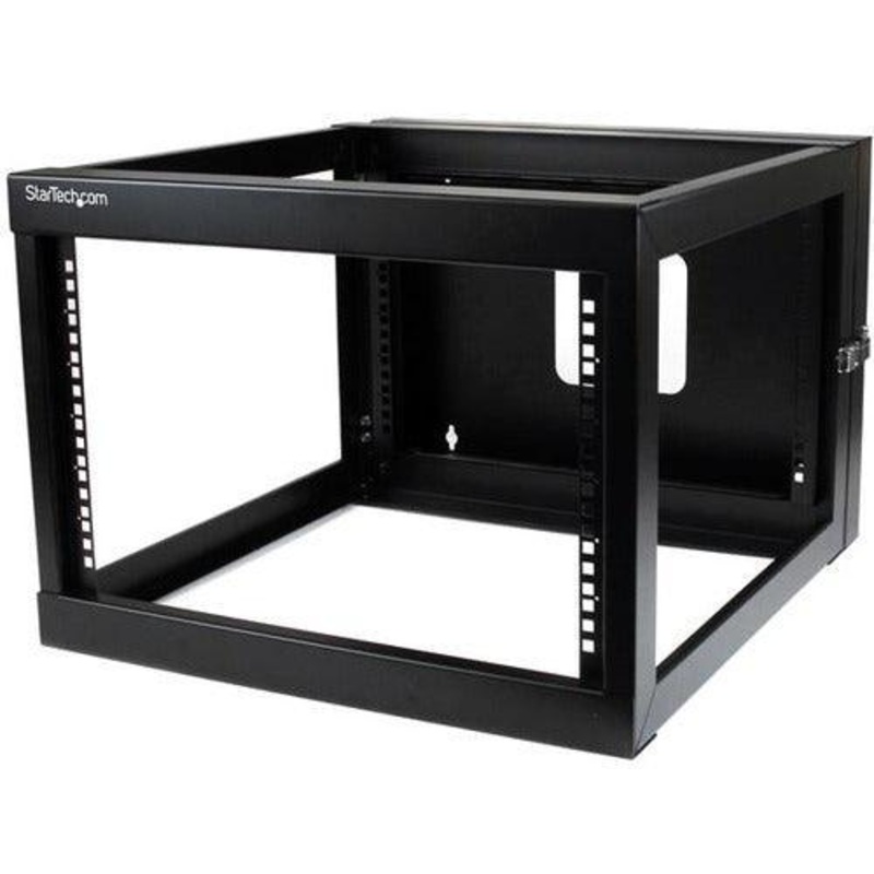 The 6U wallmount rack offers a 4 post design for additional support of your equipment, storing a maximum weight capacity of 49.8 kg (110 lbs). Constructed of high-quality SPCC cold-rolled steel for strength and durability, the open frame wallmount server rack allows for maximum airflow, and ships complete with all of the rack screws and cage nuts required to mount your equipment, saving the expense of purchasing them separately.