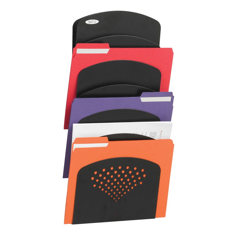 DetailsEasy organization can be yours from wall to wall! Easily organize all your letter and legal-size folders and documents on this sturdy steel wall rack. The wall rack has a durable powder coat finish and mounts flush to any wall. Includes hardware.Dim