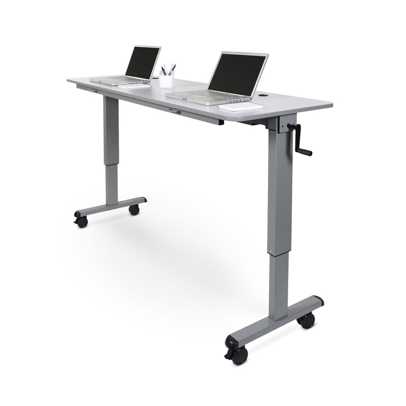 FeaturesVersatile tables can be used in training, conferences, education and business meetingsCrank handle offers an economical choice without compromising qualityAdjusts between 30" and 45.25" for seated and standing usersTable is lightweight and moves ea