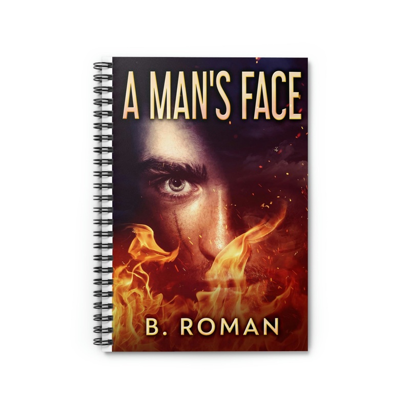 Shopping lists, school notes or poems – this 118 page spiral notebook with ruled line paper is a perfect companion in everyday life. The cover art in this spiral notebook is from B. Roman’s book, A Man’s Face.
