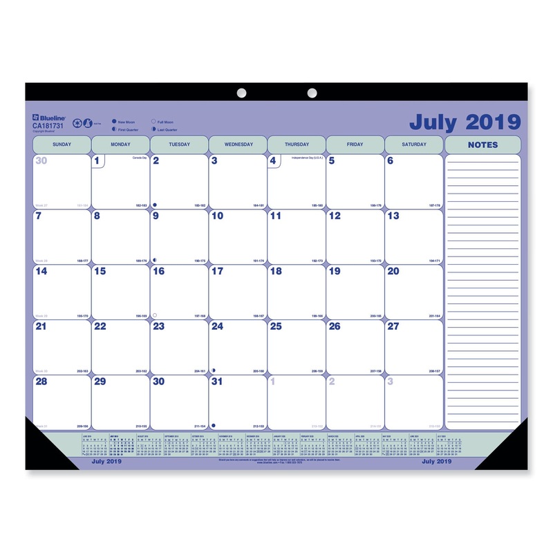 ACADEMIC DESK PAD CALENDAR, 21 1/4 X 16, WHITE/BLUE/GREEN, 2019-2020
