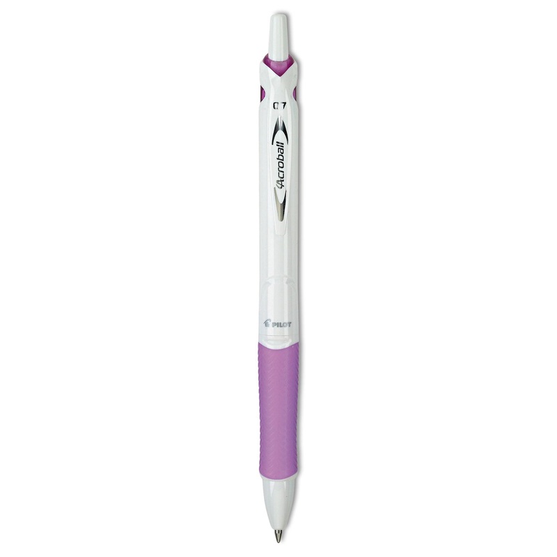 Acroball PureWhiteSeriously smooth writing meets fashion forward design. Enjoy the smoothness of gel with the fast-drying properties of a ballpoint for one incredible writing experience. Unique, comfortably textured grip. White barrel with fashionable colo
