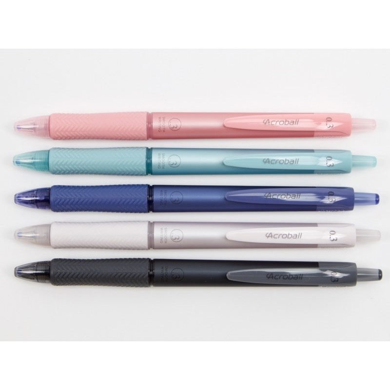The Acroball T Series is yet another great addition to the Pilot Acro family! All barrel colors come with .3mm black ink. The grip is comfortable for a pleasant hand-fit, the lubricated oil-based ink delivery is smooth for fluid writing. Satin finish muted