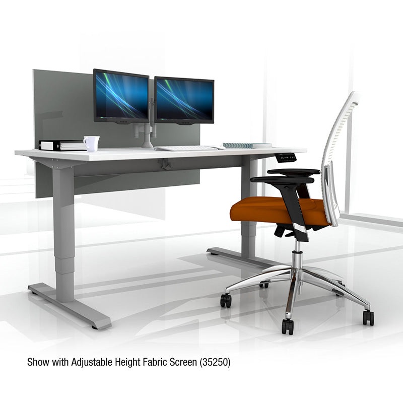 Sit-to-Stand work environments are quickly becoming the norm in space planning, With studies showing that prolonged sitting is linked to a shortened life spans, and increased body aches, height-adjustable workstations face a clear path to dominating workstations sales this coming year. The ACTIV-Pro height adjustable base brings flexibility and energy to the workplace. With LED touch screen controls, 3 memory pre-sets, quiet motor and optional adjustable height screens. Optional Fabric Privacy screen sold separately.