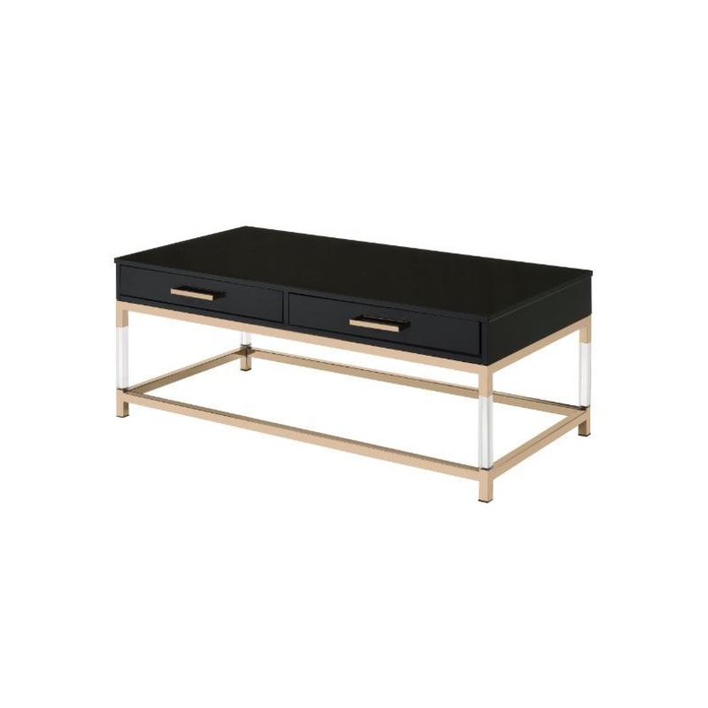 Match your seating ensemble with this Adiel Table that lend a modern flair to your living room. The beautiful metal frame in gold finish adds a touch of glam to this contemporary piece, with clear acrylic legs that elegantly frame the design. The metal fra