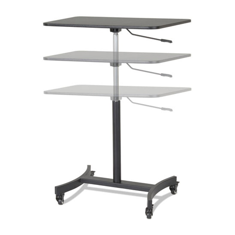 Gives you the ergonomic benefits of a sit/stand desk plus the mobility of a cart. Wherever you need to go, your desk can follow. Rising to 44″ and lowering to 29″