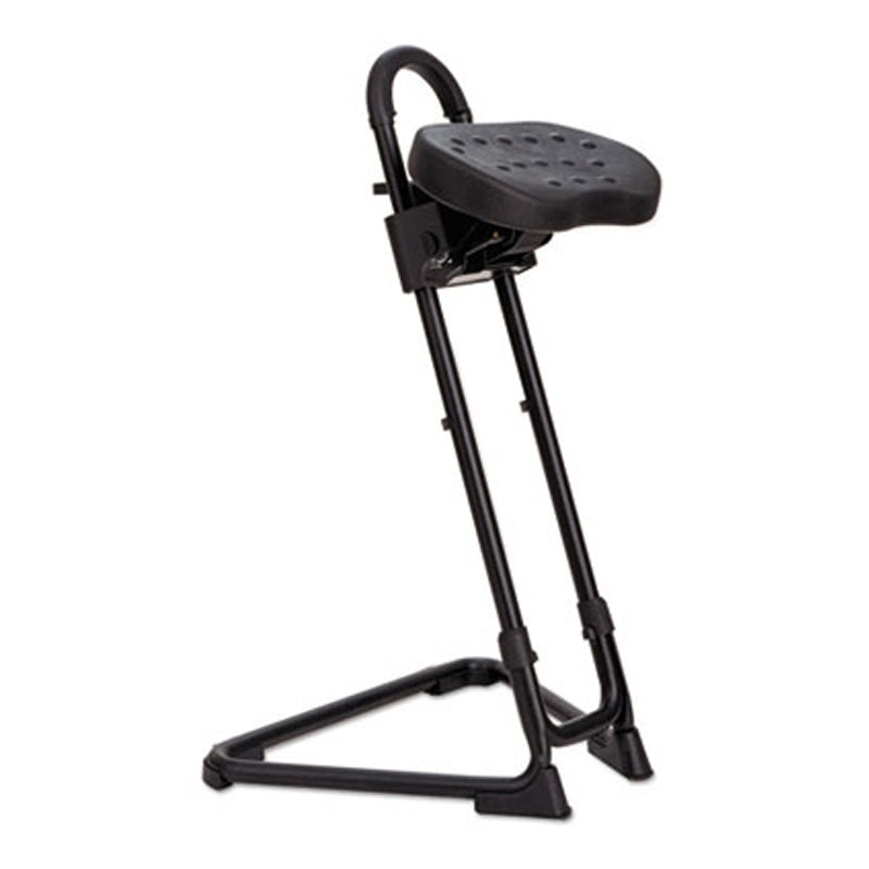 FeaturesProvides the comfort of sitting, even when standingSeat height adjust up to 10" in secondsSwivel seat with memory return delivers maximum ergonomicsCarry handle and rollers provide easy mobilityTear- and puncture-resistant PU wipes cleanNon-marring