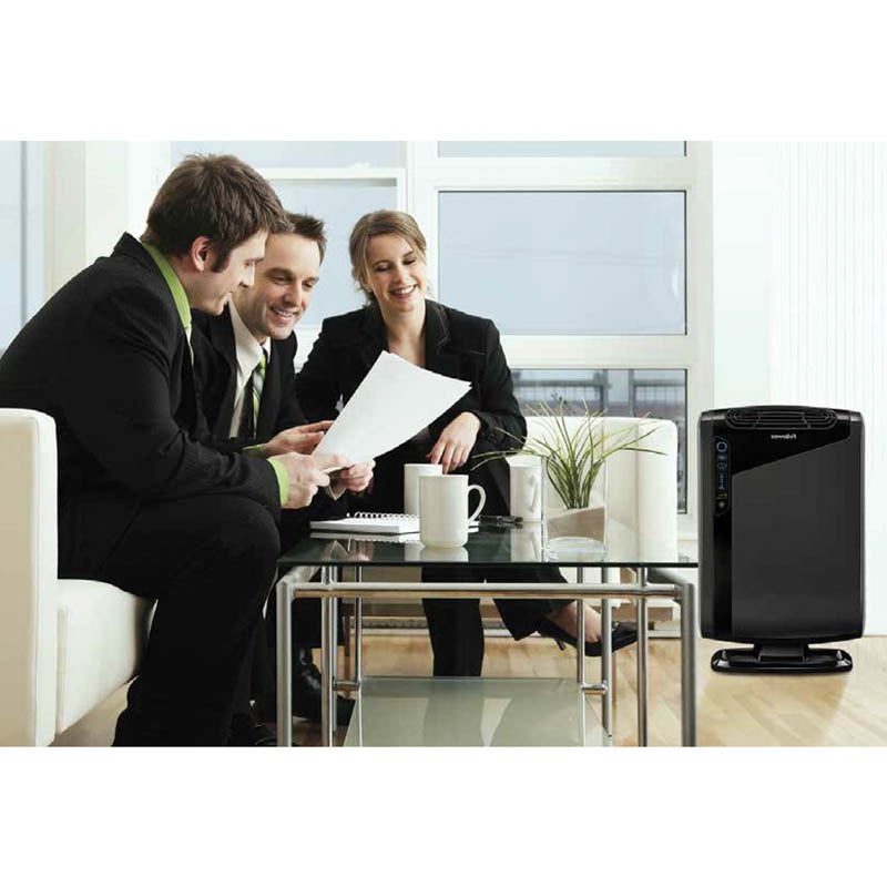 True HEPA filter with AeraSafe antimicrobial treatment safely removes 99.97% of airborne particles as small as 0.3 microns!Removes allergens such as ragweed, pollen and mold spores, as well as dust mites, viruses and germs. AeraSmart sensor effectively monitors air quality and adjusts fan speed accordingly. Includes Aera+ Mode for cold/flu and allergy season conditions. Touchscreen display panel.