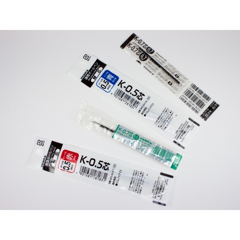 These oil-based ballpoint refills are compatible with the Zebra Airfit and Zebra Jim-Knock (among others). Choose from 0.5mm or 0.7mm tip sizes in Red (discontinued), Blue, Green, or Black ink.