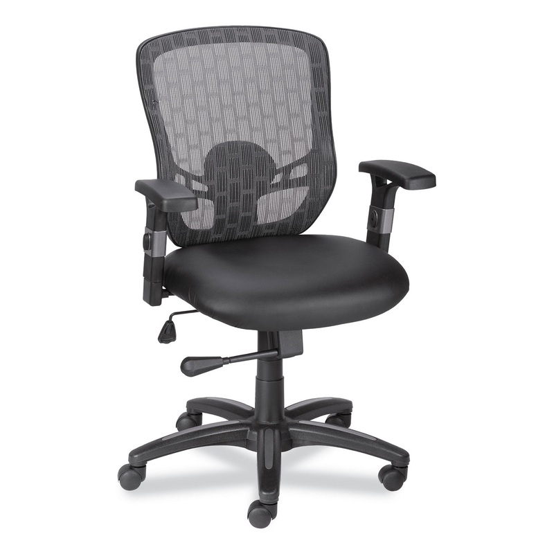 - Breathable mesh back and faux leather seat are easy-to-clean.