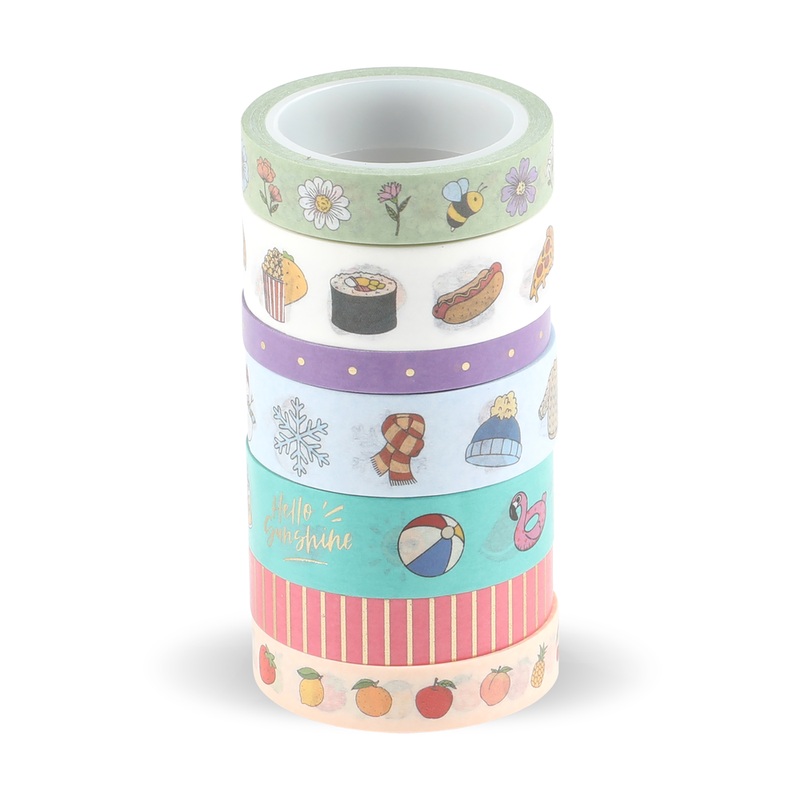 Washi tape is perfect to decorate your Happy Planner or any other project you might be working on. Add these seasonal strips in our All the Things collection to your weekly spread to help make planning that much more fun with this washi tape set!7 rolls of