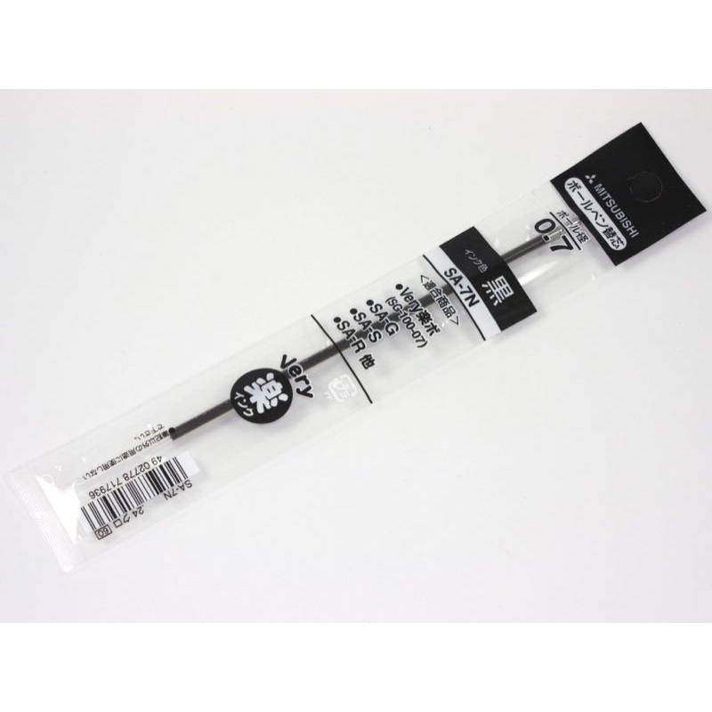 This Mitsubishi refill is compatible with the Alpha Gel Thin ballpoint pen. It comes in a 7.mm tip and black ink only.