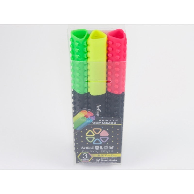 Artline BLOX by Shachihata are definitely unique! These highlighter pens draw a 4 mm line. The outstanding feature of the Artline Blox are the concave and convex patterns on the barrel. This enables you to connect one Artline to another. You can even conne