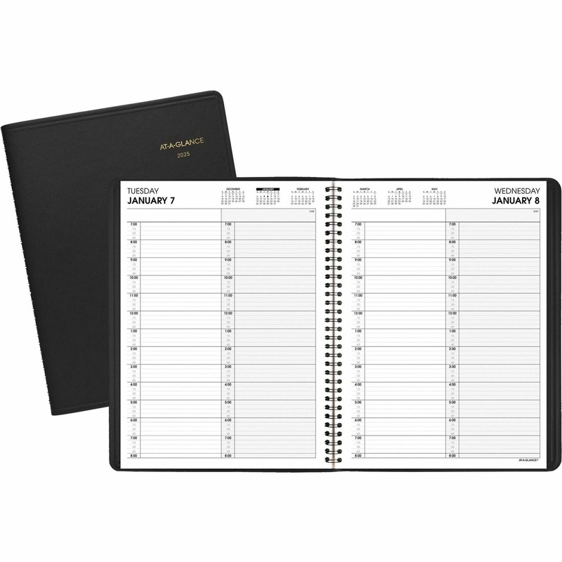 At-A-Glance 2-Person Appointment Book – Julian Dates – Daily – 1 Year – January 2025 to December 2025 – 7:00 AM to 8:00 PM – Quarter-hourly – 1 Day Single Page Layout – 8″ x 10 7/8″ Sheet Size – Wire Bound – Simulated Leather – Black Cover – Perforated Co