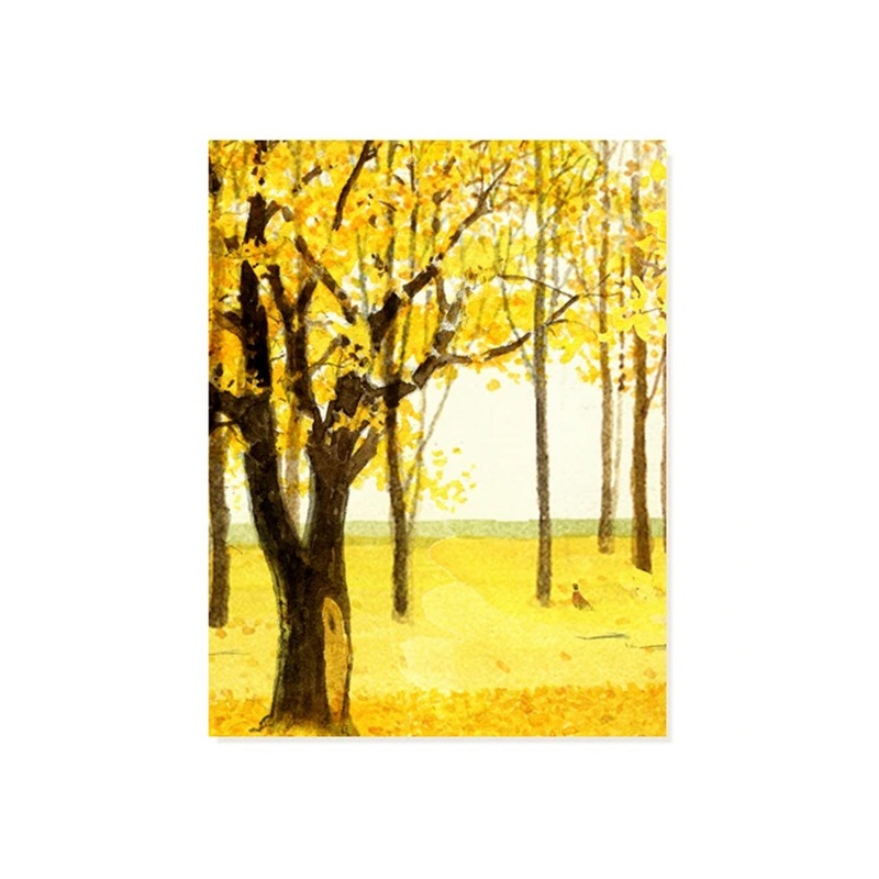 Trees in their golden yellow attire showcase the particular beauty of autumn in the countryside. Printed on a beautiful eggshell stock, and featuring Felix's watercolor drawings and handwritten calligraphy. Plus a matching quality envelope.Blank Inside4.25