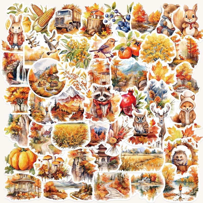 Step into an autumn wonderland with this charming set of 50 Autumn Nature & Forest Critters Stickers! Featuring high-definition prints of cozy cabins, woodland animals, pumpkins, golden trees, and crisp mountain scenes, each sticker is a tiny masterpiece.