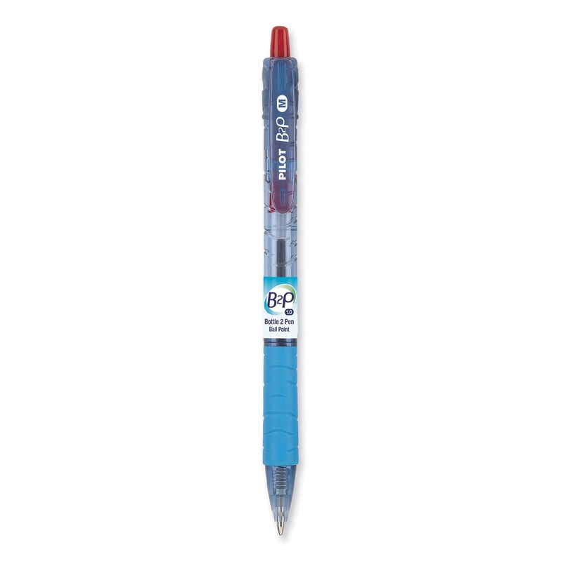 B2P Bottle-2-Pen Recycled Ballpoint Pen, Retractable, Medium 1 mm, Red Ink, Translucent Blue Barrel, Dozen