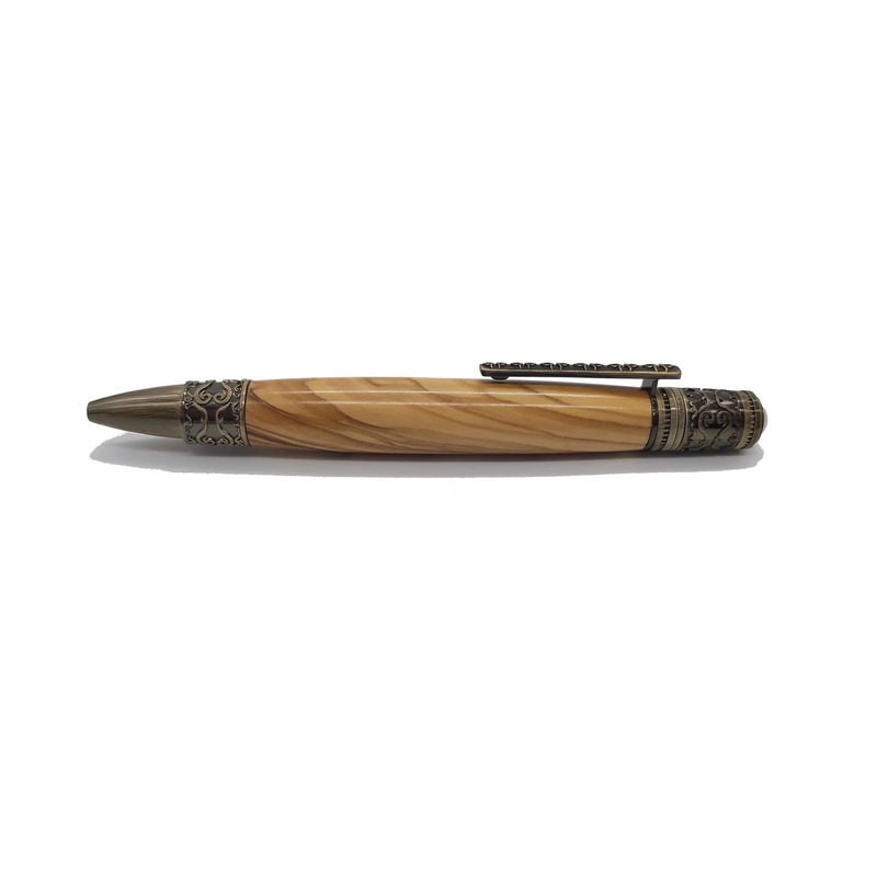 Bethlehem Olive wood pen Quality handmade wooden ballpoint twist pen handmade in Olive wood from Bethlehem. The pen features Antique Bronze coloured fittings. Each pen will vary as no two pieces of wood are quite the same. This is a beautiful handmade qual