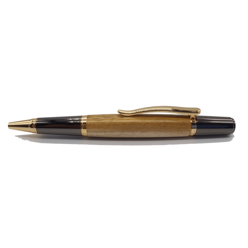 Quality handmade wooden ballpoint pen handmade in Mulberry from Saltram House Plymouth. The pen features gold coloured fittings which perfectly compliment the wood. Each pen will vary slightly as no two pieces of wood are quite the same.