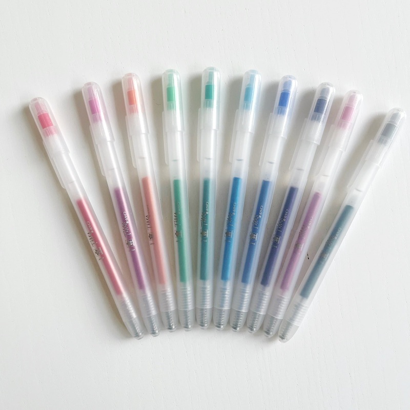 This pen features a glitter-infused water based gel ink and they are perfect for adding a bit of sparkle to your notes, planner and snail mail. The water-based gel ink ensures a smooth and consistent writing experience and they come in a jewel-inspired col